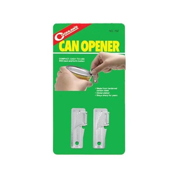 Coghlan’s – Mini dåseåbner er simpelthen uundværlig på alle ture i det fri hvor der skal tilberedes mad. Der er 2. stk i hver pakke, som er fremstillet i rustfri stål.