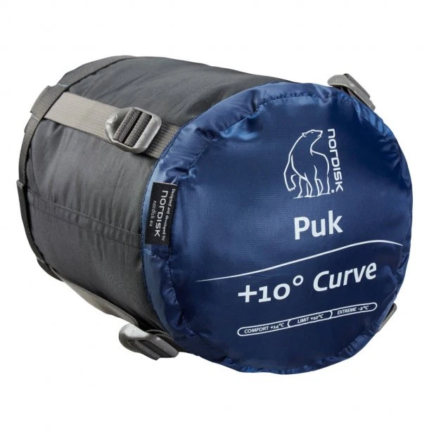 Puk +10° Curve soveposen fra Nordisk er god til de varmere omgivelser med en komforttemperatur på +14 grader. Formen er lavet kurvet for at optimere komforten til din nattesøvn og samtidig reducerer vægten, mens 2-vejs lynlåsen gør det muligt at åbne den i både top og bund. Soveposen kommer i let vægt og lavet af slidstærkt rip-stop, foringen indeni soveposen er blødt. Fyldet er Norguard S-PO 80. Puk indeholder også en intern brystlomme til mindre genstande. Lynlåsen i fuld længde tillader dig at lyne soveposen helt op. En bred kontureret hætte gør soveposen alsidig selv i køligt vejr.