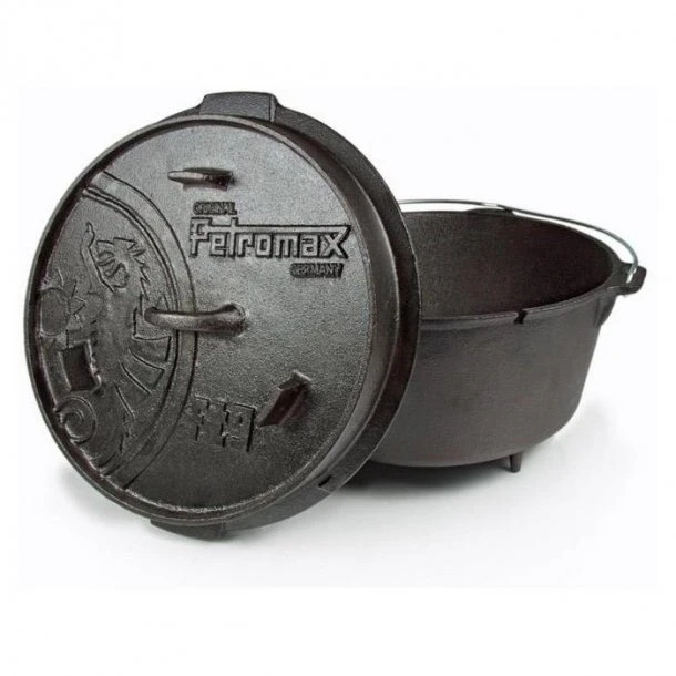 Petromax støbejernsgryderne er perfekte til madlavning i det fri. Gryderne kan bruges direkte på bålet eller hænges fra et bålstativ, så du nemmere kan styre temperaturen. Støbejernsgryderne er meget varmeledende og holder godt på varmen, hvilket gør dem perfekte til både kød, grøntsager og til bagning. Ved tilberedning i en støbejernsgryde tilberedes kødet meget mildt, hvilket holder på vitaminer og næringsstoffer. Låget på gryderne kan vendes og bruges som en stegepande.