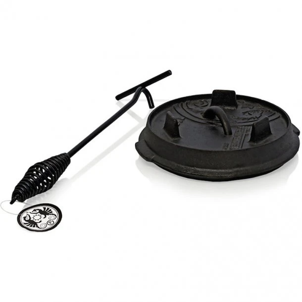 Med løftehåndtaget fra Petromax undgår du at brænde nallerne når du laver mad i det fri. Håndtaget monteres omkring hanken på grydens låg, så det nemt og bekvemt kan løftes af. Håndtaget er udført med et spiralhåndtag, så det ligger godt i hånden og du undgår at det skrider. Derudover kan håndtaget også bruges som ildrager til at holde styr på bålet.