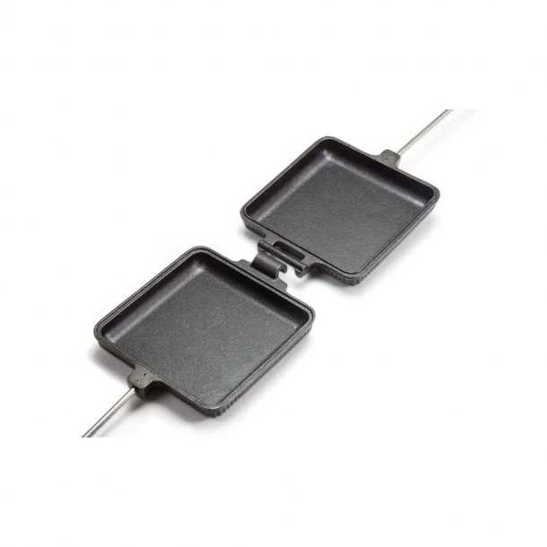 Sandwichjern fra Petromax er perfekt til at tilberede toast, bagels, fyldte dumplings eller meget mere. Sandwichjernet kan nemt bruges over åben ild eller på din grill, hvor brødet bliver perfekt sprødt, og fyldet – sødt eller salt – bliver lækkert juicy. Sandwichjern fra Petromax er ideelt til toastskiver, der måler 11 x 11 cm., og sandwichjernet er udstyret med en praktisk låsekrog, som holder toastpladerne sammen, så fyldet ikke falder ud. Sandwichjernet er nemt at rengøre ved at separere de to plader.