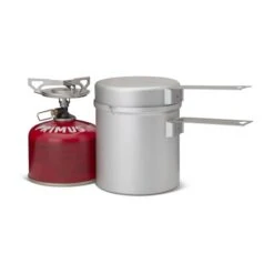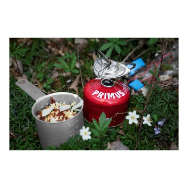 - Letvægts anodiseret aluminiumsgryde (0,5 L) passer til komfuret, der er fastgjort til 230 g-beholderen for nem pakning