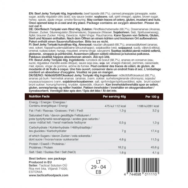 Tactical Foodpack – Teriyaki Beef Jerky 112 Kcal